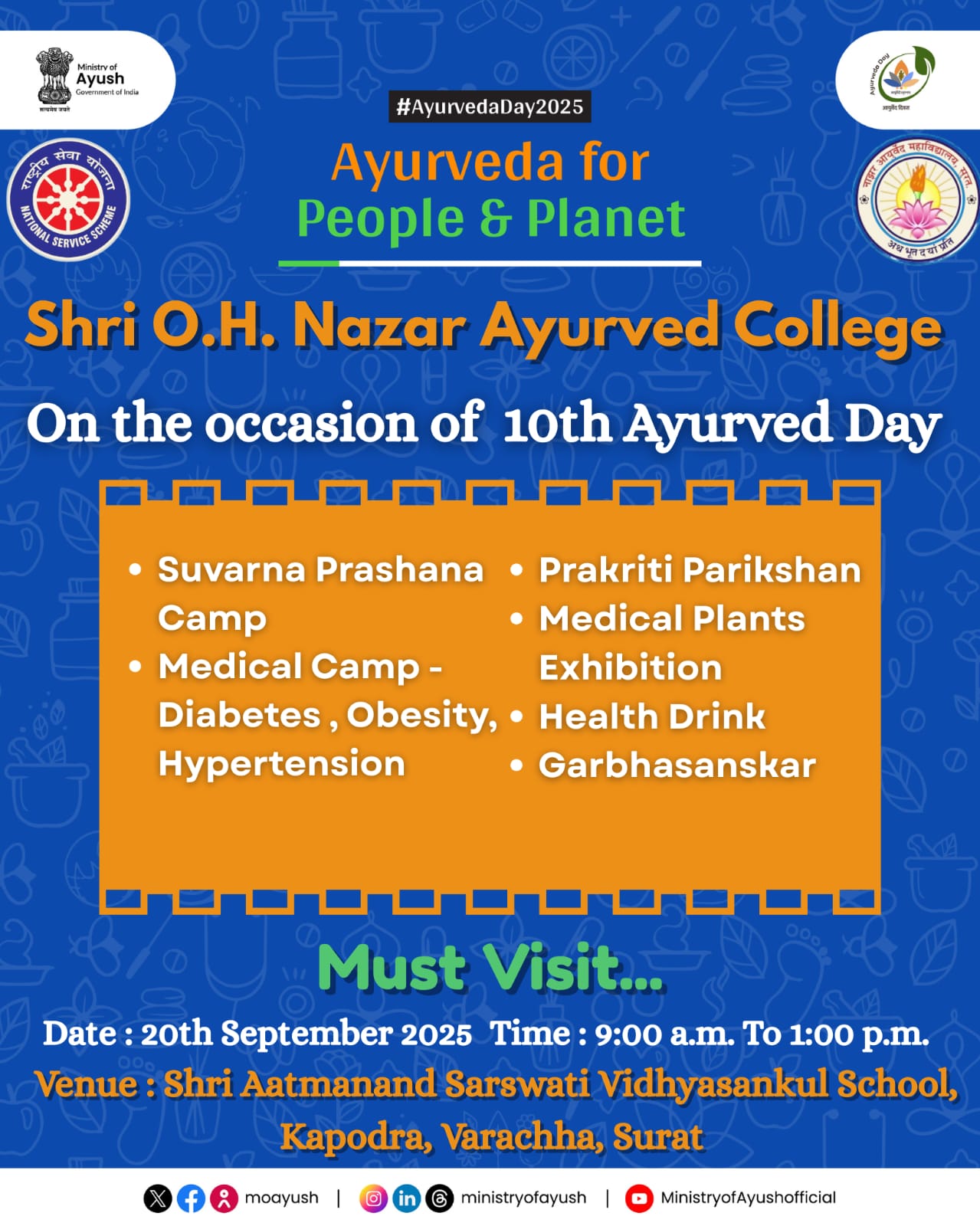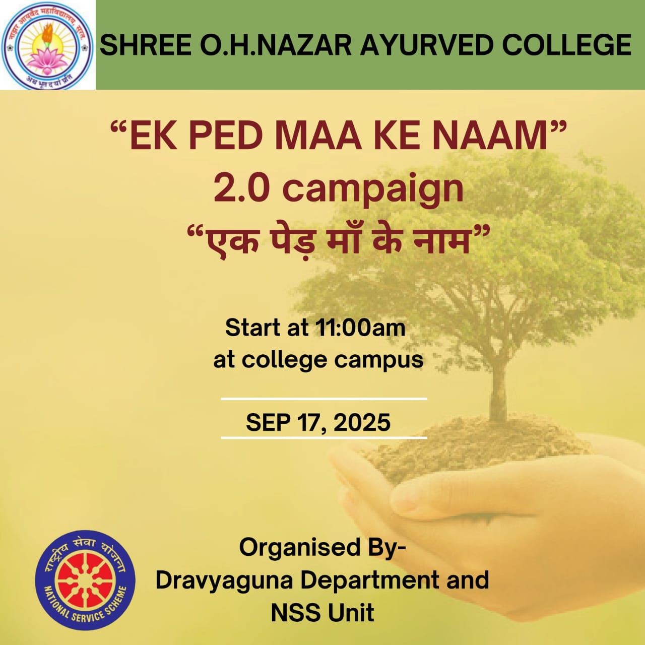 On dated 17.09.2025, at Shri O.H. Nazar Ayurved College, the programs "Ek Ped...